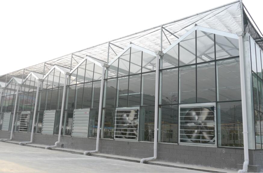 覆蓋材料為國產(chǎn)4mm或5mm厚浮法玻璃,其透光率〉90%。溫室頂部及四周為專用鋁型材。側(cè)面和端面也可采用單層、雙層或中空玻璃為覆蓋材料