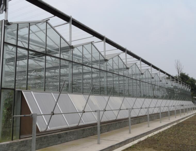 覆蓋材料為國(guó)產(chǎn)4mm或5mm厚浮法玻璃,其透光率〉90%。溫室頂部及四周為專用鋁型材。側(cè)面和端面也可采用單層、雙層或中空玻璃為覆蓋材料