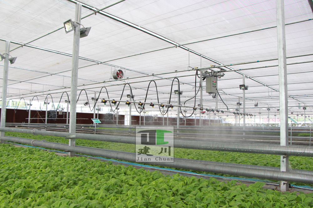 自然通風(fēng)系統(tǒng)、外遮陽(yáng)系統(tǒng)、內(nèi)遮陽(yáng)系統(tǒng)、頂部開(kāi)窗、風(fēng)機(jī)濕簾降溫、自走式噴灌系統(tǒng)、循環(huán)風(fēng)機(jī)、強(qiáng)電控制系統(tǒng)、計(jì)算機(jī)控制系統(tǒng)、二氧化碳發(fā)生、補(bǔ)光、給排水系統(tǒng)等